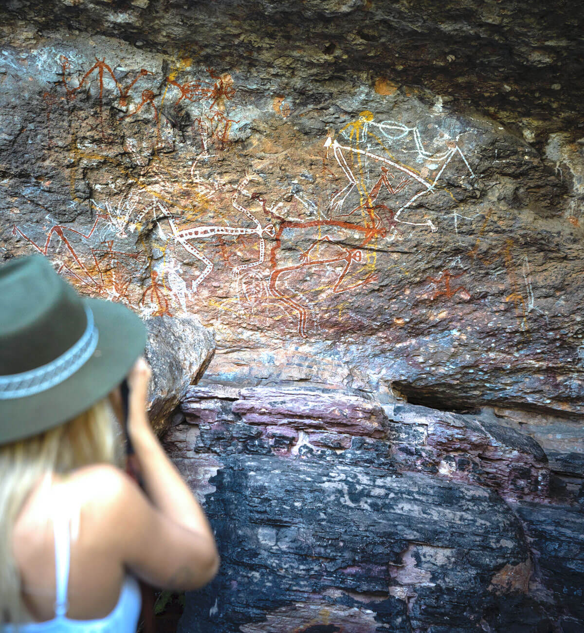 Exploring Kakadu continues with a visit to Burrungkuy (Nourlangie), an important cultural spot with amazing Aboriginal rock art. Following our guide, we walk among these old art pieces, where stories of how the world began, of ancient beings and their link to the land, are clearly shown in natural paints. It's a powerful moment, standing before art made thousands of years ago, giving us a peek into the beliefs and lives of those who lived long ago. And for a truly special view, you can often take an optional scenic flight, soaring above Kakadu's huge area and seeing its many waterways and cliffs from high up.