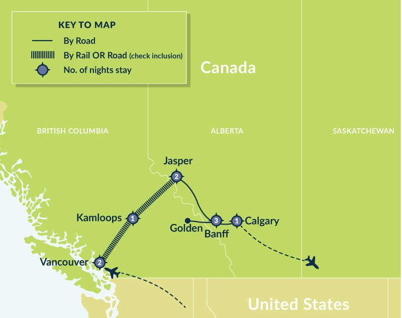 Today you board the world-renowned Rocky Mountaineer daylight train service to Jasper via Kamloops. Departing Vancouver pass through the fertile fields of the Fraser Valley and view the towering peaks of the Coast Mountains before entering the Fraser Canyon. You'll see the thundering waters of Hell's Gate and follow the Thompson River to historic Kamloops gateway to the interior of British Columbia.