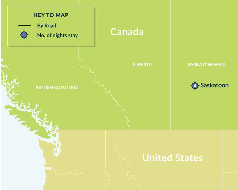 Arrive in Saskatoon and check into your hotel exploring the city centre by foot. There is a tremendous variety of craft breweries and boutique restaurants using fresh local ingredients in the city. Saskatchewan is, after all, the breadbasket of Canada and the city’s food creators have infused local ingredients into their menus to create a wide and varied choice. The striking new Remai Modern museum sits on the riverbank with stunning views of the South Saskatchewan River and prairie skies. Spanning four levels, Remai Modern has 11 gallery spaces over three floors, learning studios, a theatre, restaurant, store, lounges, play areas and numerous multi-use spaces. Join an informative guided walk through the gallery arranged through the front desk.
