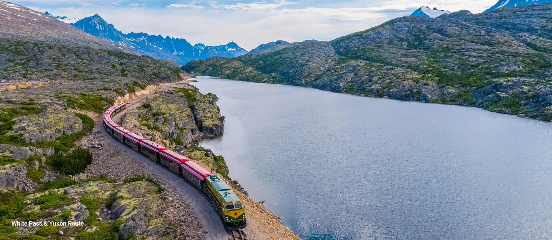 We drive this morning to Carcross, a friendly community within the Traditional Territory of the Carcross/Tagish First Nation. Carcross is a small community alive with Indigenous art and culture, the only one-way street in the Yukon, the oldest hotel in the territory, the smallest and most northerly desert in the world, and Yukon’s strongest bridge. Pick up the Historic Buildings Walking Tour brochure at the Visitor Information Centre in Carcross and explore the town at your own. We will stop at the Emerald Lake. Known as “Rainbow Lake” by the First Nations, Emerald Lake offers a breathtaking view on its truly emerald-green water surrounded by Surprise Mountain and Mt Gilliam. Next, we will drive to Fraser. We will then board the scenic Fraser to Skagway White Pass train, an incredible train ride over the white pass with so many scenic views. The journey is fully narrated, with comfortable coach cars and 27.7 miles one way journey. The journey takes about 2 hours and once we arrive in Skagway, you will have time for lunch on own and a walk around. The drive back from Skagway to Whitehorse is, in a word, spectacular. You’ll be reaching for your camera around every bend in the road. We will drive by Windy Arm and Tutshi Lake as the road continues winding through magnificent alpine scenery and over White Pass, ascending from Skagway. Pullouts along the way not only give you some outstanding photo opportunities, but also reveal the heroic and heartbreaking stories of the gold rush. We will make some scenic stops along the way to Gold Rush Cemetery, White Pass and Carcross Desert. We end our eventful day at the Southern Lakes Resort on the shores of Tagish Lake which is more than 100kms long.