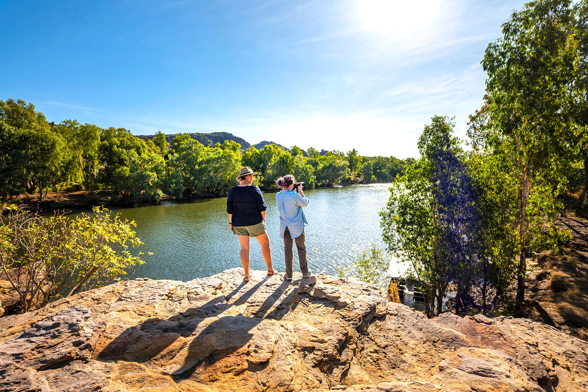 Exploring Kakadu continues with a visit to Burrungkuy (Nourlangie), an important cultural spot with amazing Aboriginal rock art. Following our guide, we walk among these old art pieces, where stories of how the world began, of ancient beings and their link to the land, are clearly shown in natural paints. It's a powerful moment, standing before art made thousands of years ago, giving us a peek into the beliefs and lives of those who lived long ago. And for a truly special view, you can often take an optional scenic flight, soaring above Kakadu's huge area and seeing its many waterways and cliffs from high up.
