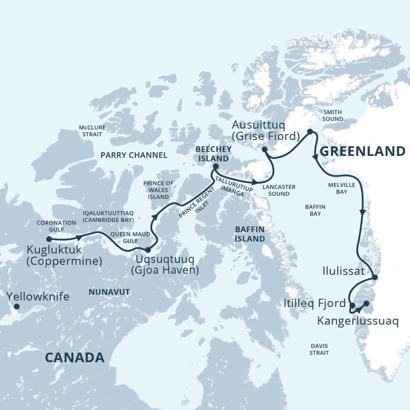 Note: Pricing based on deck 4, porthole window with private bathroom. Single Occupancy limited and on request. Our TwinShare Program is not available for this tour. Includes charter flights from Toronto to Kangerlussuaq and from Kugluktuk to Yellowknife and Discovery Fee ($250).