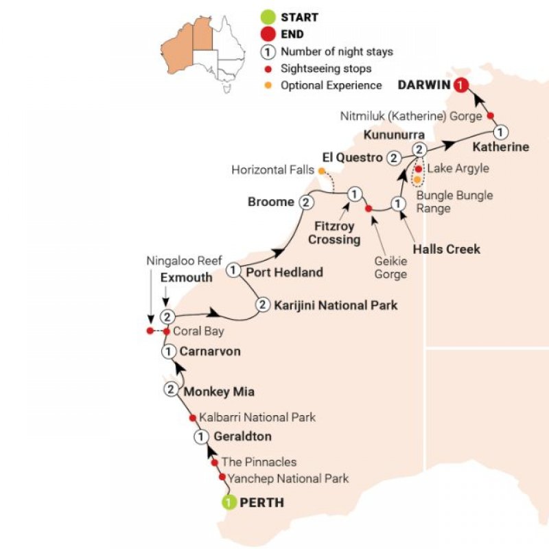 Broome, Darwin, El Questro Wilderness Park, Fitzroy, Halls Creek, Katherine, Kununurra