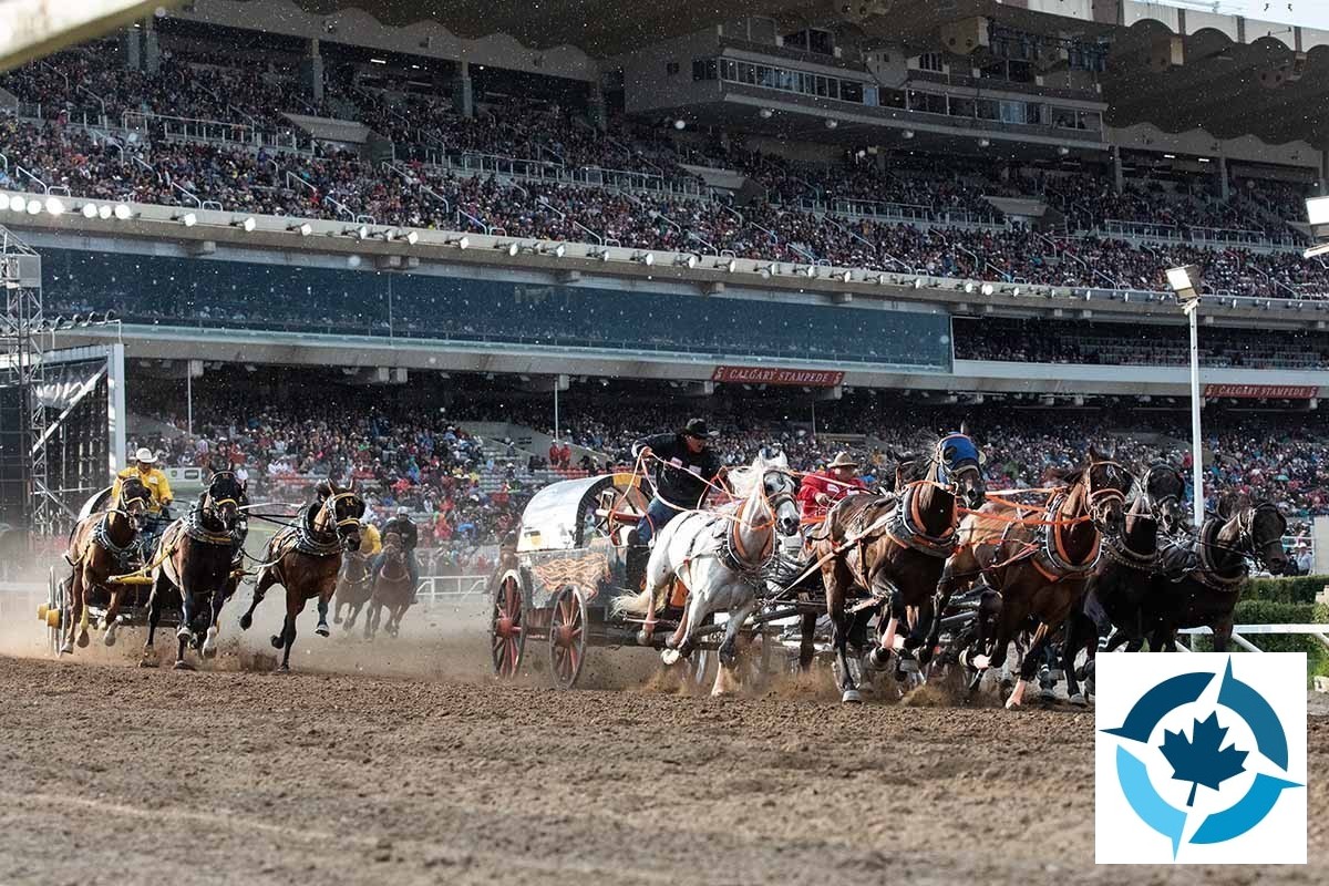 This evening you have tickets to the Chuckwagon races and the Grand Stand Show. That pounding of hooves and trembling of the ground can mean only one thing; the world's premier chuckwagon event, the GMC Rangeland Derby, has begun! During nine nightly heats, featuring a new semi-final Saturday, you'll witness all the heart-stopping action as 36 drivers, 216 horses and their teams of outriders vie for over $1.15 million in prize money! During the Stampede, the races start nightly at 7:45 pm. The world famous Grandstand Show follows. Your event ticket includes your entrance to Stampede Grounds for the day.