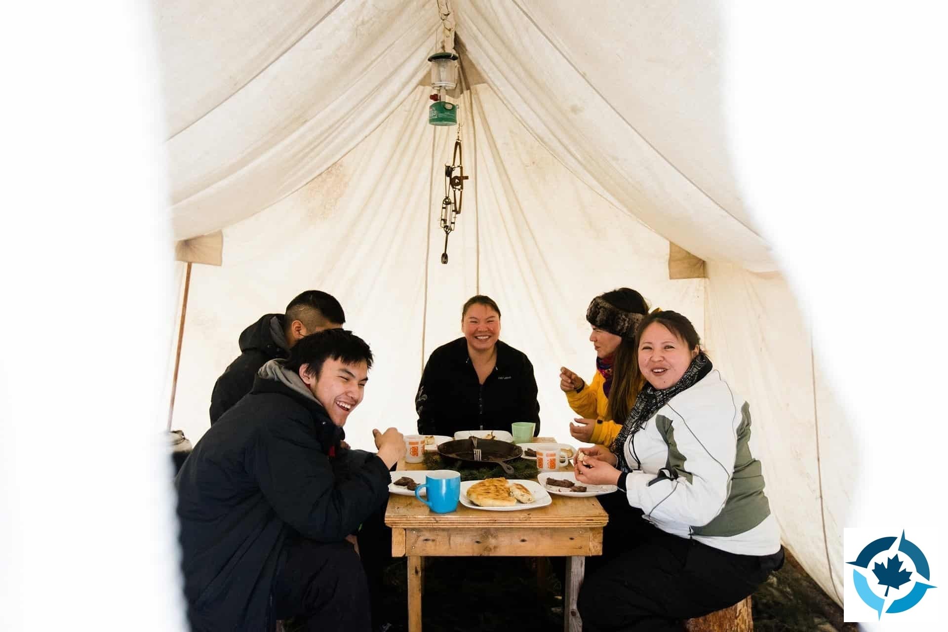We have an easy morning after our previous late-night aurora hunting excursion and drive out to a lakeside camp that belongs to a local Dene Indigenous family. Here we will hear stories about how the dog teams have played an important role in the daily lives of both the Indigenous peoples and western settlers in the old days, and how they have helped people survive. The dogs were like family and are still treated the same way today. This excursion to interact with the dogs and the family is carried out in collaboration with an indigenous family business that wants to keep the cultural traditions and teachings that they have learned from their grandparents and has decided to share them with others in an enjoyable way. Through their winter dog sledding, they aim to promote respect for Indigenous culture and share the survival ways of people living in the cold subarctic areas. We return to Yellowknife for some free time and dinner before we head out to experience an authentic Indigenous aurora experience and spend an evening among the Dene people, with northern lights, storytelling, Dene history, and legends, traditional drumming, hand games demonstration, and samples of traditional foods such as local Great Slave Lake fish, and freshly made bannock. We travel by minivan (followed by a short 10-minute walk) to a Dene campsite on the shores of the Great Slave Lake near the village of Dettah and spend time in a cabin and teepees and comfortable seating for everyone.