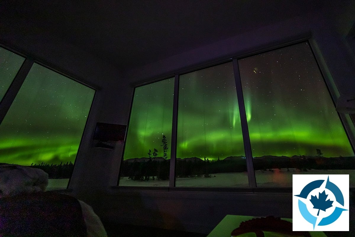 Today you will get picked up from your Whitehorse hotel and transferred to the Northern Lights Resort just outside of town. The family‑run Resort is located the in rural idyll of the picturesque Yukon River Valley, just 20 minutes south of Whitehorse in a quiet open countryside, surrounded by pine forests and ringed by mountains. The large and quiet property is perfect for the Aurora viewing, is this location is far from any light pollution or neighbours. Enjoy the spectacular views of the Northern Lights from the large viewing deck, the viewing site by the Teepee or the privacy of your cabin. An even more spectacular viewing awaits you from the comfort of our Aurora glass chalets. The chalets offer perfect Aurora viewing with their floor-to-ceiling windows opening up to the northern sky. There is nightly guided Aurora viewing and photography assistance.