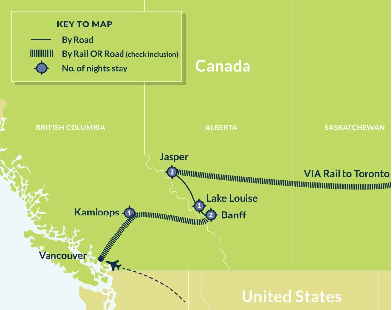 Continue eastward on your rail journey to the mighty Canadian Rockies and the province of Alberta. You will see a spectacular range of scenery as you travel across ranch lands, along rocky lakeshores, over high mountain passes and through the remarkable tunnels that form the rich rail history of the Canadian Rockies.