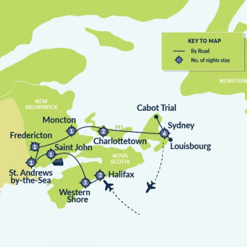 Following breakfast, this part of our Maritimes adventure comes to an end. Many of our fellow travelers will take the 6 hours long ferry to Port aux Basques to start the Newfoundland part of their tour. For those ending their Maritime Mosaic experience today, a 20-minute taxi ride on own from the city center will take you to Sydney airport for your return flight connections.