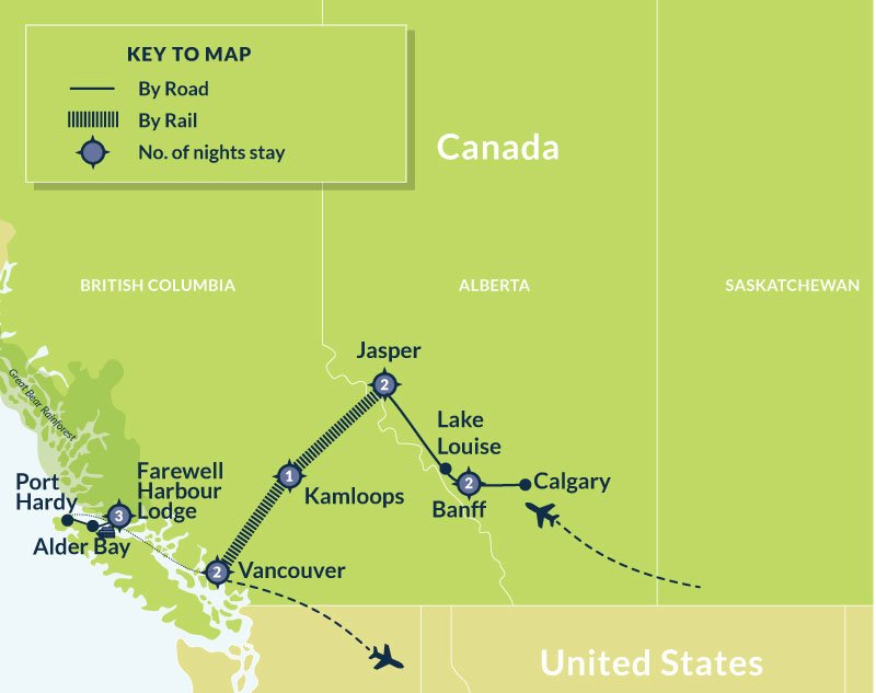 Your journey continues towards the Pacific Ocean and the coastal city of Vancouver. You will again see dramatic changes in scenery, from the desert-like environment of the Interior, through winding river canyons and pristine forests, to the Coast and Cascade Mountains and the lush green fields of the Fraser Valley. Highlights include the steep slopes and rock sheds along the Thompson River and the rushing waters of Hell’s Gate in the Fraser Canyon. Your rail journey ends on arrival in Vancouver.